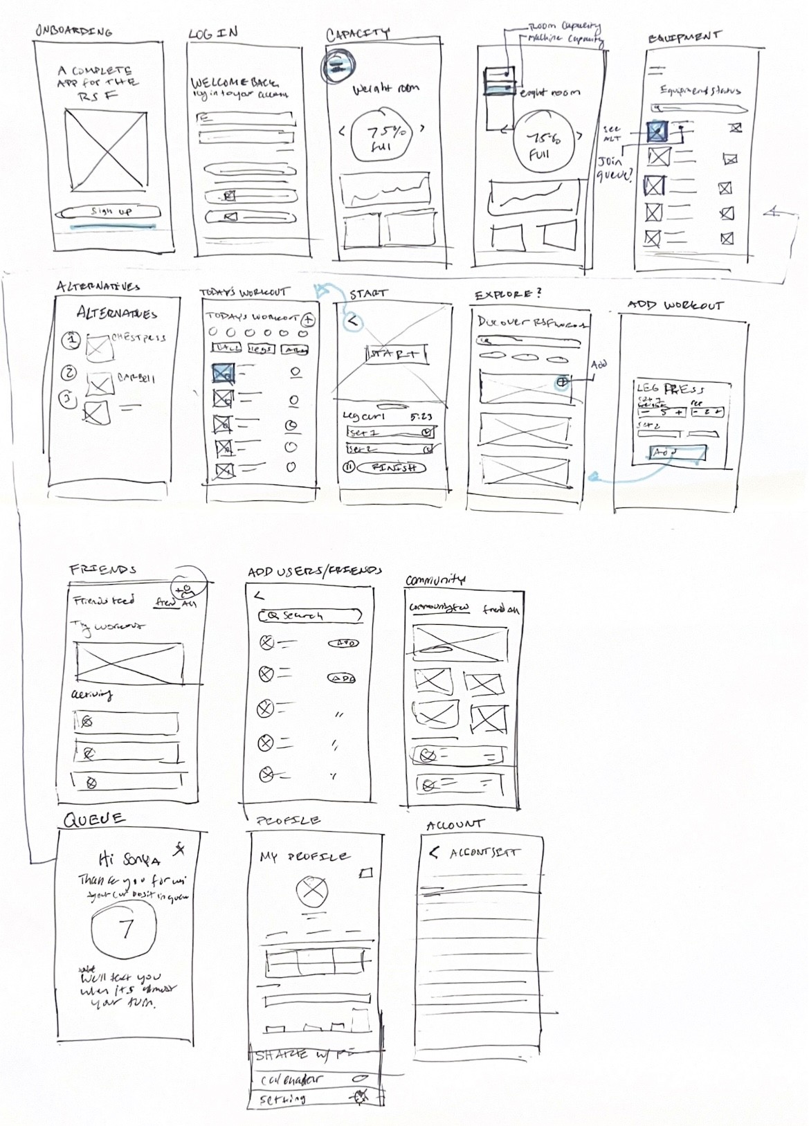 At this stage, I felt ready to start identifying the features within my app. I understood my target users, and had defined the main problems my users were facing with their RSF gym experience. With this, I began to brainstorm features that would create the most viable solutions.