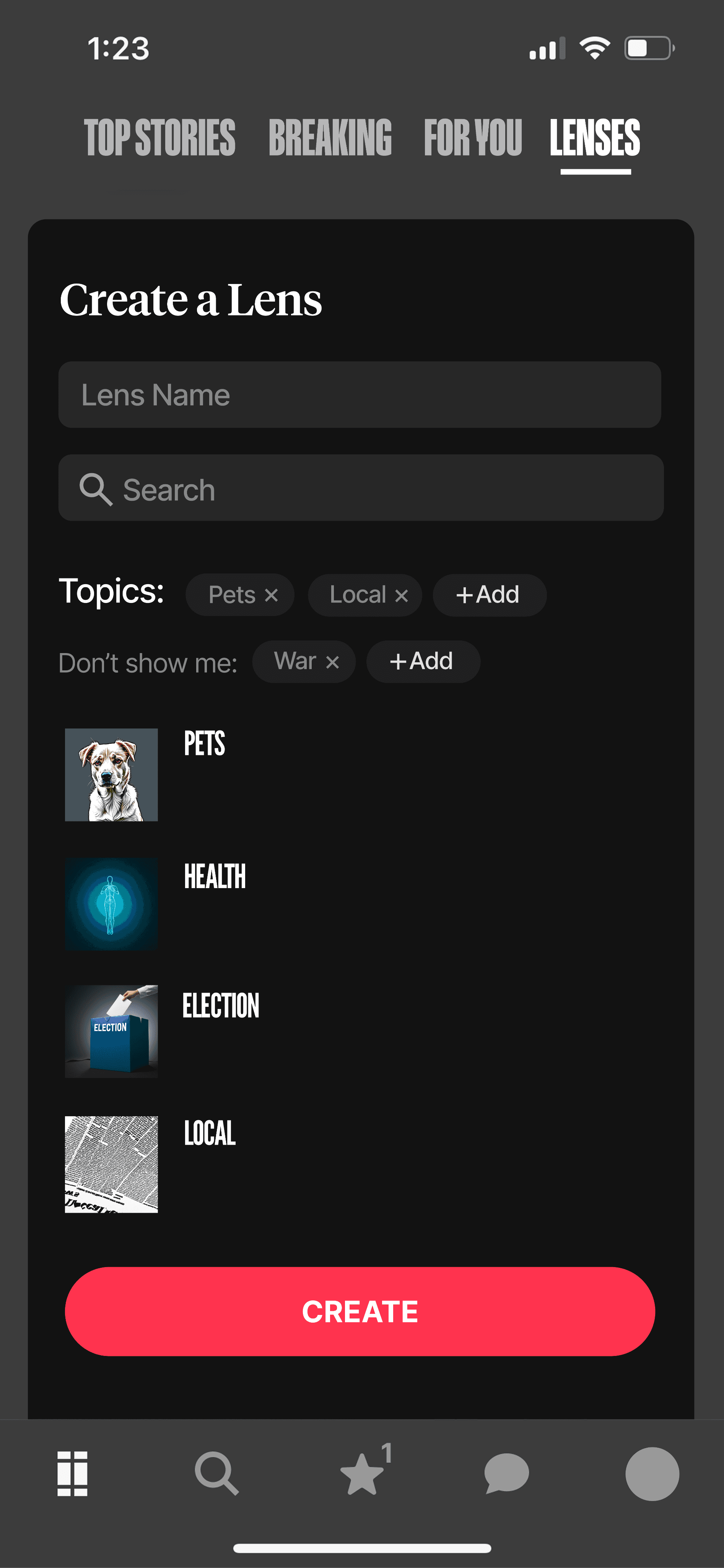 Adding “Lenses”. Users can look at news through a personalized Lens, making the news feed more relevant, reducing drop-offs from generic browsing