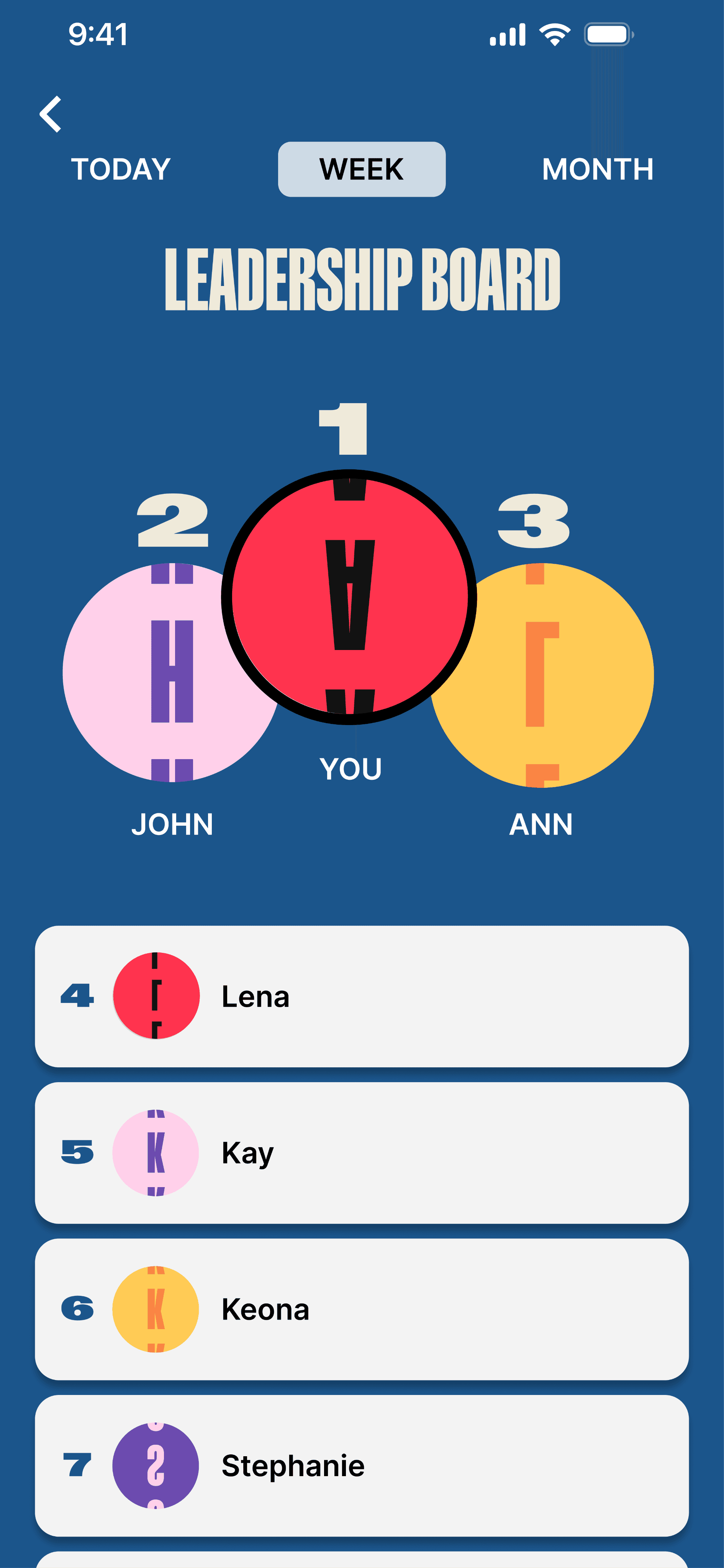 Introducing friendly competition, motivating users to play as well as potentially bring friends onto the app.