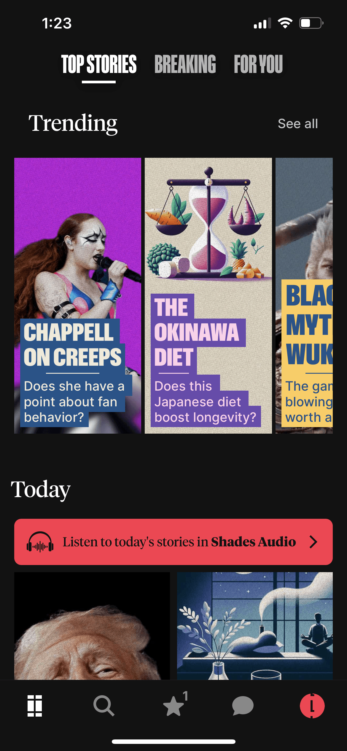 I found that a common denominator among these news apps is personalization and habit-forming features, with successful games often centered around word-solving. In contrast, Shades focuses on trending categories paired with games that range from very simple to very complex.