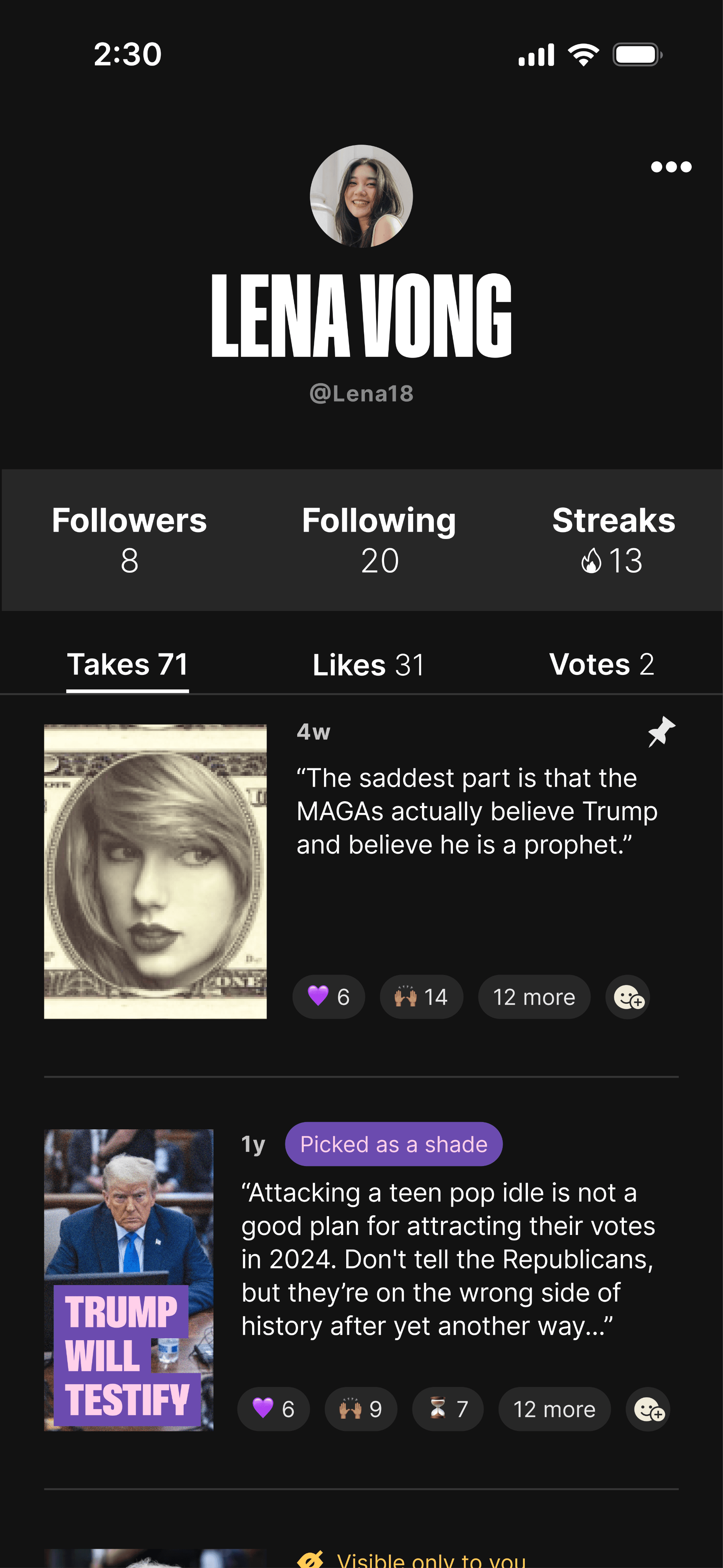 Shades is a news app target for gen z users that offers news in concise summaries from diverse perspectives, allowing users to like, comment, and poll on news content.